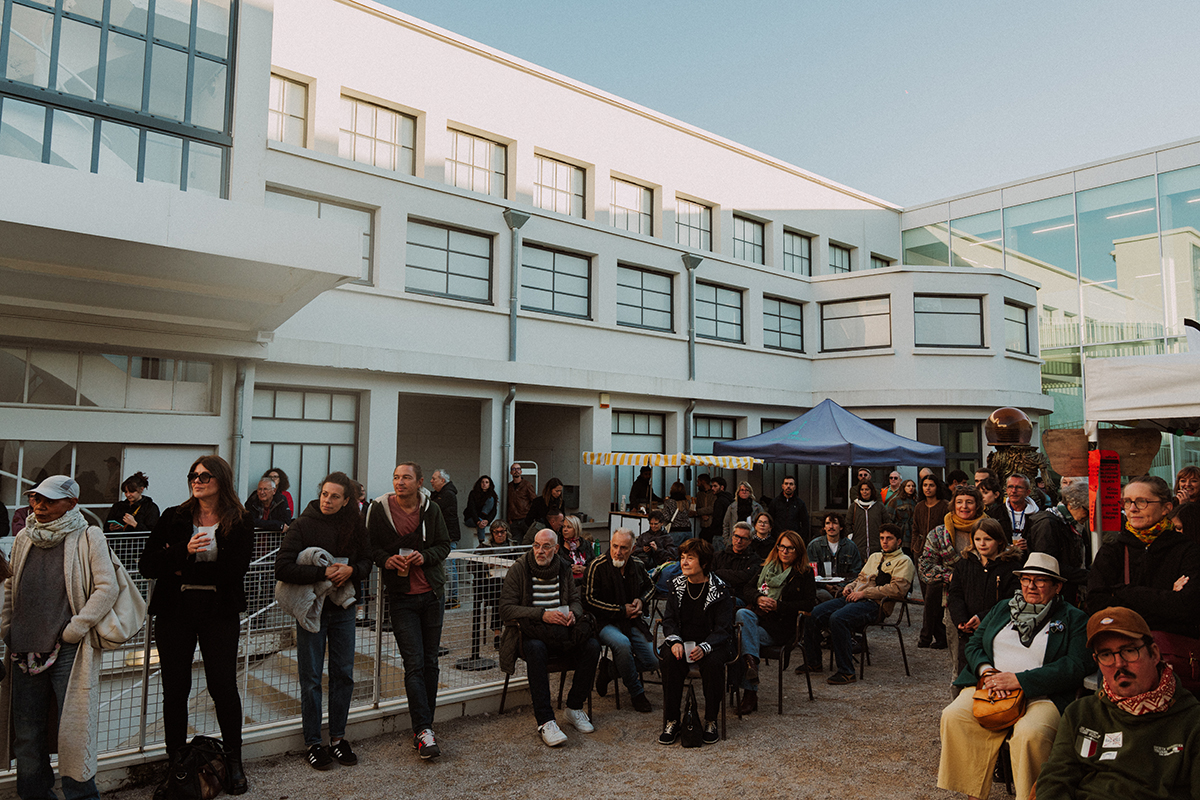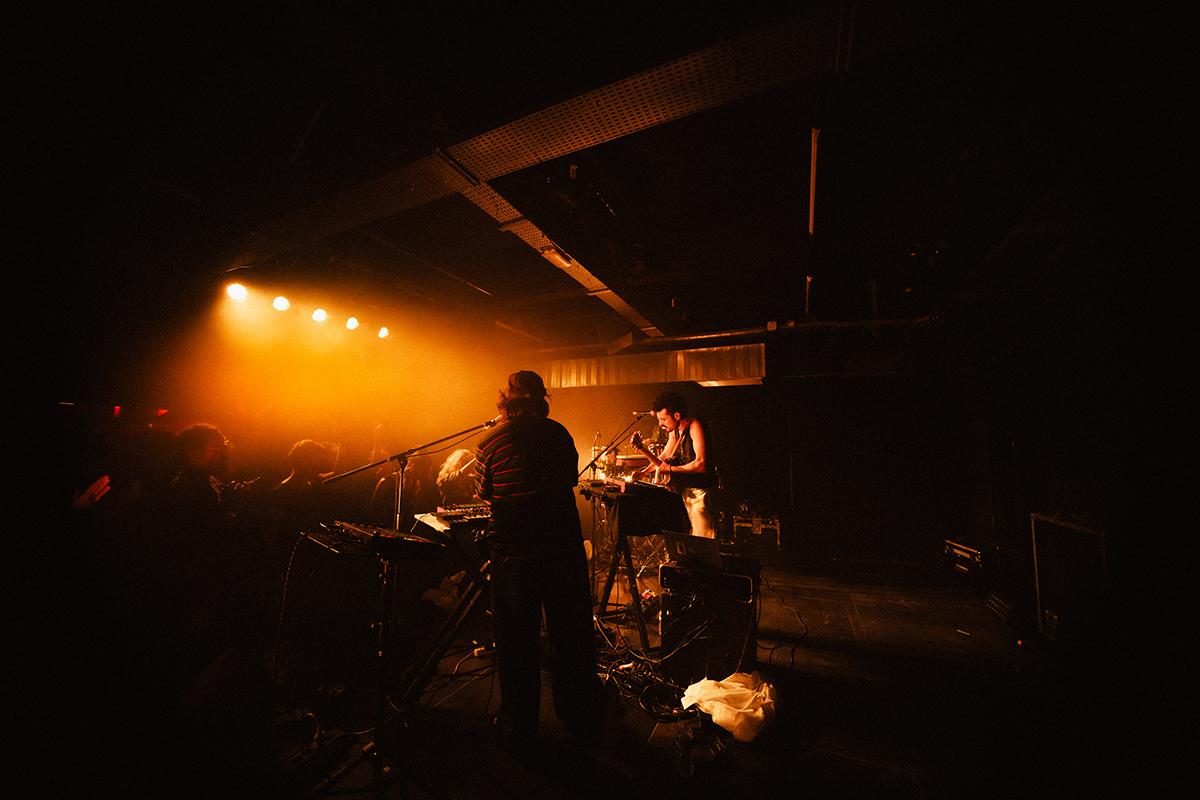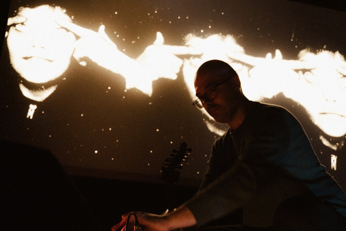Soleil d’hiver, c’est un récit de famille. L’histoire d’un retour impossible, d’un western imaginaire où l’Ouest américain serait de l’autre côté de la Méditerranée, au Sud de l’Algérie et du Liban. Seul en scène, Grégory Dargent, en argonaute noise. Oud, console et pédales numériques comme bêtes de somme, films et photos projetés en arrière-scène pour paysages. Départ de la caravane du Tribu 2025 pour une B.O. de road trip multisensoriel : les souvenirs d’abord, des photos en noir et blanc projetées, des gosses qui courent, des chiens qui posent. L’enfance et la nostalgie sont là. Avant que cet album de famille ne se mette à brûler, devant les images des immeubles vétustes et les rues ravagées. Grégory Dargent construit l’empreinte sonore de cette quête des origines qui n’a jamais eu lieu ailleurs qu’à cet instant, face à nous. C’est une peinture sonore, une de ces fêtes populaires, celles où le riff et la transe vont de pair, unis en une frénésie sonore. C’est un désert plein d’échos venus du Oud devenu bruitiste et électrique, un feu de camp qui brûle les souvenirs acoustiques pour les transformer en délire électronique. Avant ce trait de fin, face à la mer et à sa quiétude. (llt)