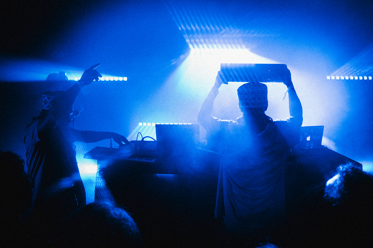 Petits chapeaux, T-shirt bleus frappés du logo Tribu, deux silhouettes débarquent. Petits Schtroumpfs DJ turbulents. Aux platines et aux machines, Sisso & Maiko lancent la mécanique singeli : tempo fou, basses qui giflent et rythmes serrés comme des ruelles de Dar es Salaam. La fosse est happée, aspirée dans un set dont la vitesse refuse définitivement de lever le pied. Soudain, les beats se frottent à la mélodie qui déboule sans prévenir : flûtes, sifflets, instruments à vent traditionnels s’invitent dans le flux électro-puncheur. Entre deux accélérations, les deux musiciens frappent le sol de leurs sandales, et inventent illico une batterie bricolée sous leurs pas. Tout devient percussion, tout devient pulsation. Sans réfléchir, sans ralentir. Les corps s’échauffent, les couches sonores s’empilent. Tarab, techno, afro-house, hip hop. Pas de place au seul plaisir, encore moins au hasard. Dans ce chaos ultra précis, se glisse une ironie politique : la marge dicte son tempo, la contrainte des appareils d’Etat se retourne en fête collective. À Dijon, c’est Zanzibar au coin du bar, c’est l’appel de la classe ouvrière très classe, c’est un set comme un cyclone : une musique trop rapide pour les cases, trop vivante pour les musées, et furieusement assez libre pour transformer un dancefloor en carnaval féroce et indomptable. Une cavalcade parfaite. (llt)