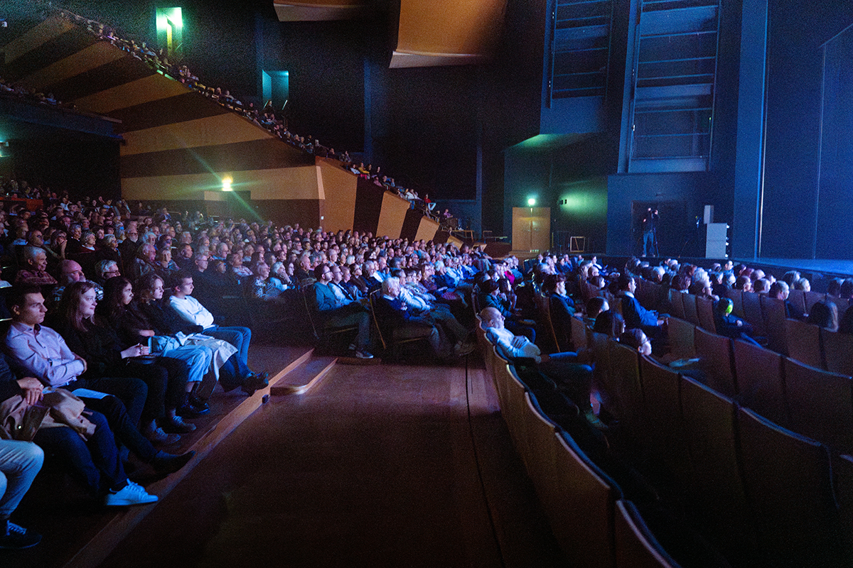 Quasi deux heures d’un set qui tiendrait du film choral, joué à l’auditorium, cinémax blindax. Dix-sept musicien·nes, à la maîtrise parfaite, à l’auto-dérision idem : chacun·e a son solo, sa scène, sa folie distillée en grain. La virtuosité est là — millimétrée, redoutable — mais toujours traversée par ce sourire en coin qui distingue l’exercice de style de la jubilation partagée. Au centre de cet écran sonore imaginé par Sylvaine Hélary, toute nouvelle tête de l’ONJ, la batterie et le vibraphone comme axe de symétrie, colonne vertébrale de l’orchestre. Autour, les masses se déplacent. Travellings : cordes qui surgissent en contrechamp, cuivres en gros plan, souffleurs en plans-séquences saccadés. C’est du cinéma sans caméra, une mise en scène spatialisée par le son.